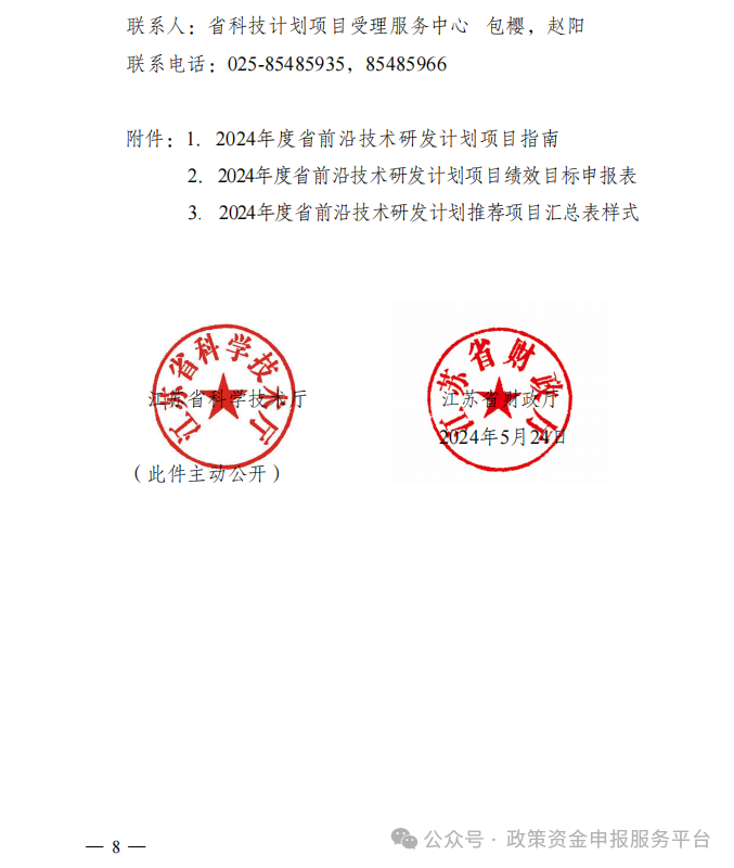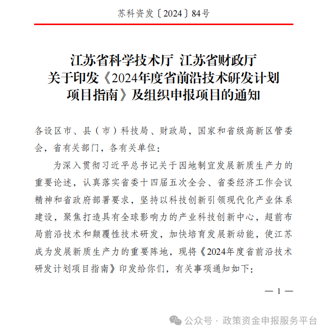 2024年度江苏省前沿技术研发计划项目指南及组织申报项目的通知